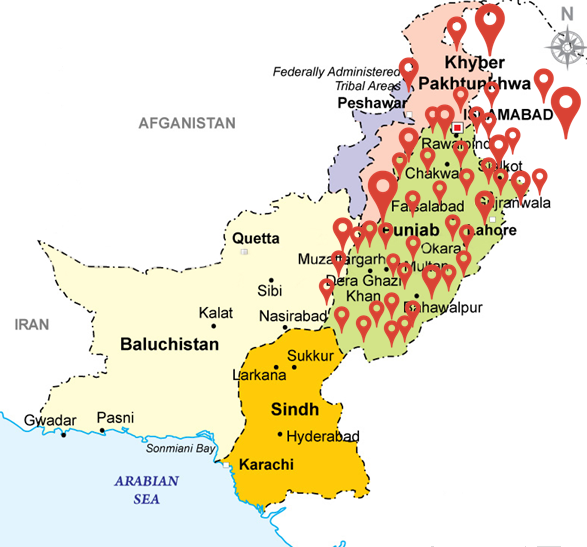 | Faisalabad | Sahiwal | Sargodha | Lahore | Bhakakr |